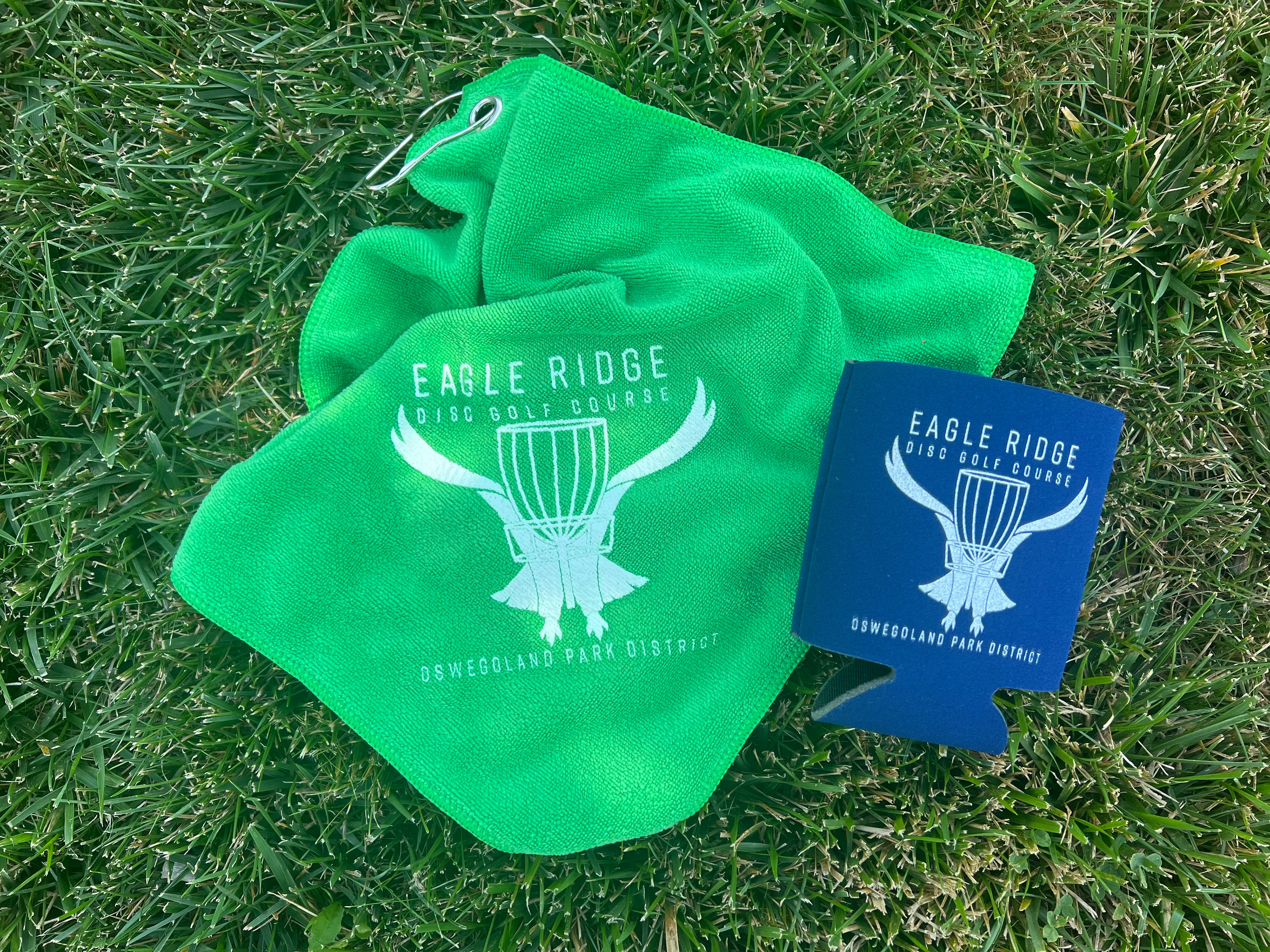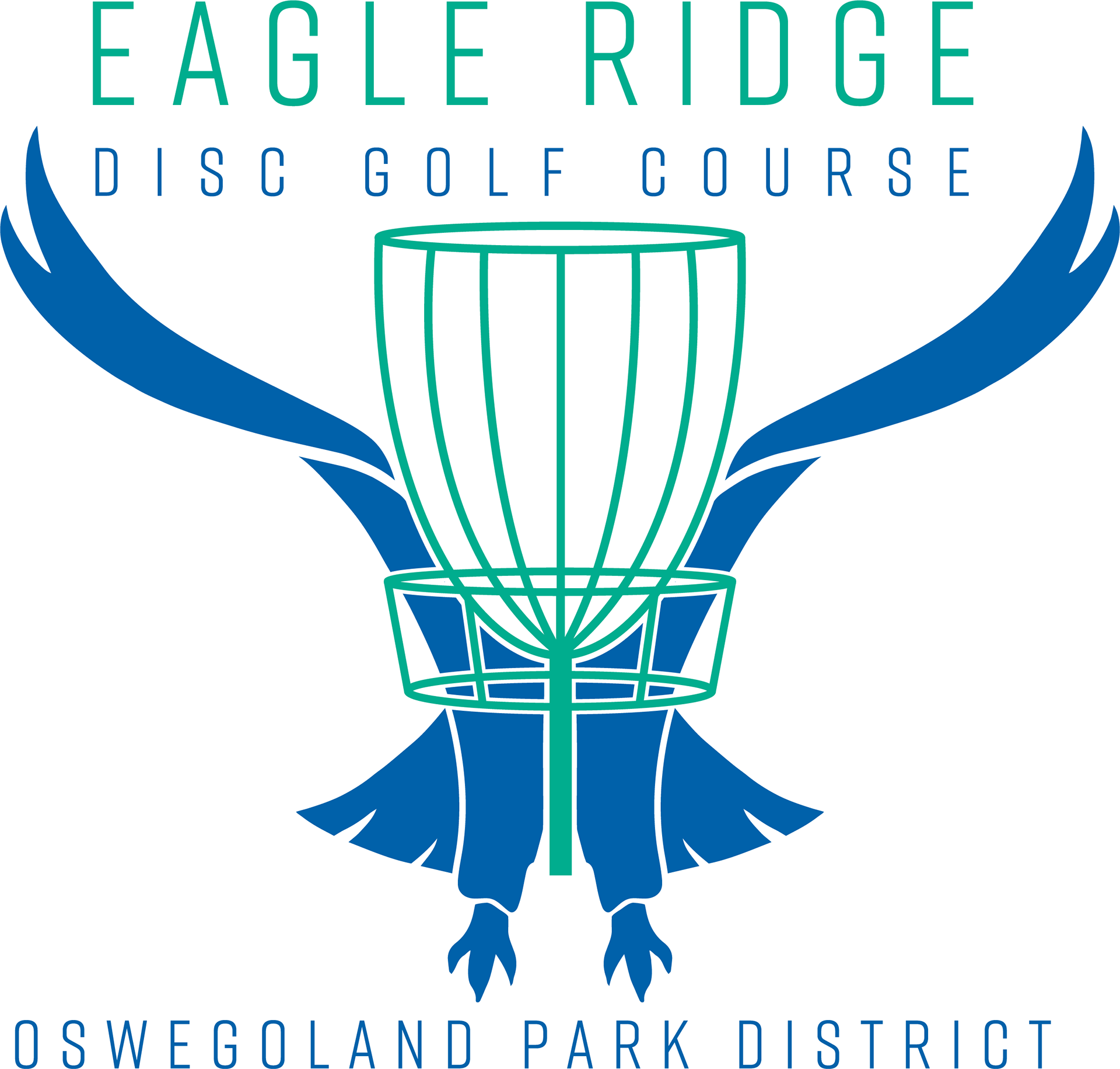 This logo was created for the Eagle Ridge Disc Golf Course. The logo was requested to include an eagle, a disc golf basket, and the line "Oswegoland Park District." The color green represents nature as the course is located in a wooded area. The blue represents the Fox River which is located along the course.