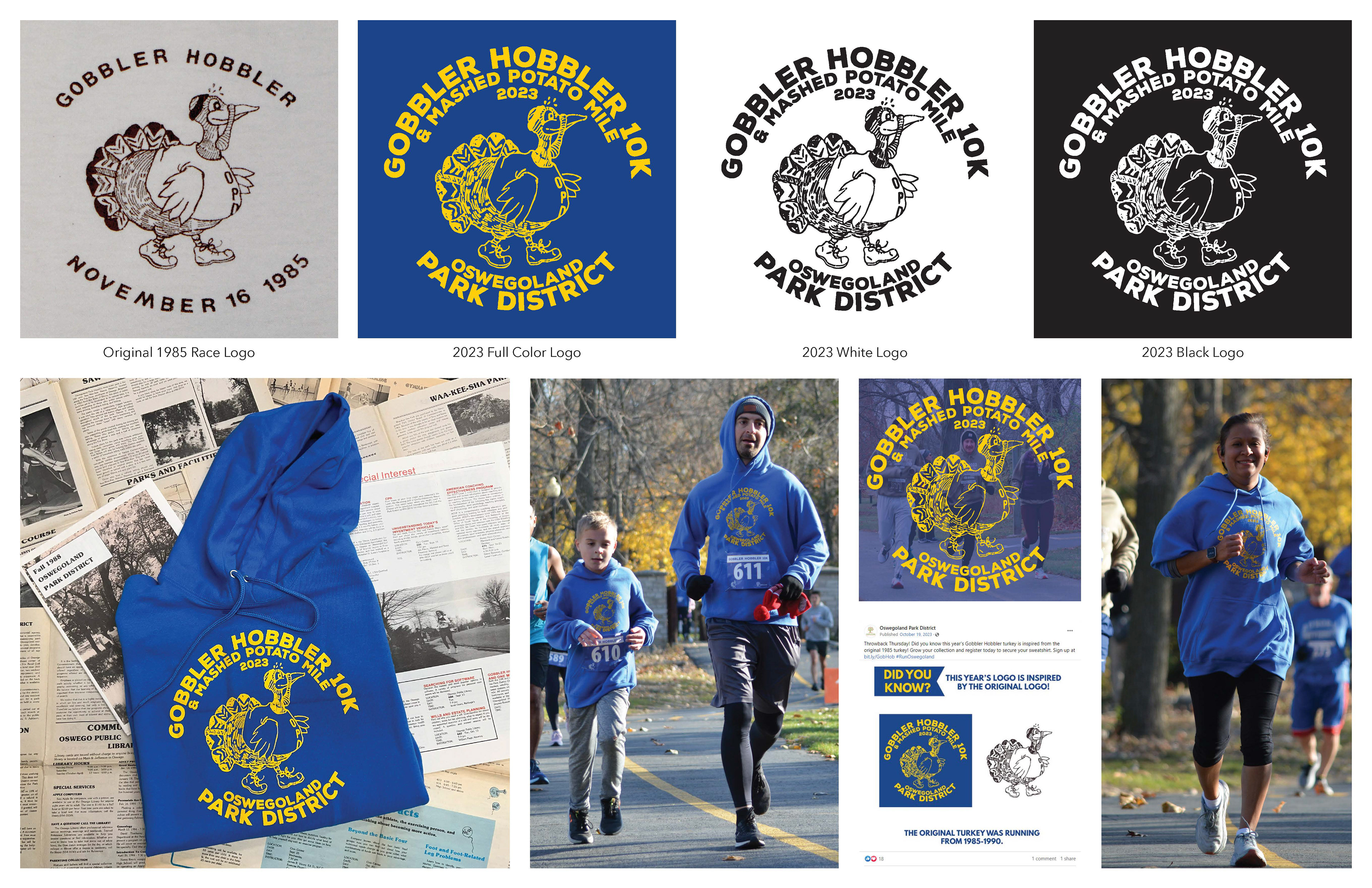 These marketing pieces were created for the 39th annual Gobbler Hobbler 10K run. The original 1985 race logo was recreated for a limited edition throwback hoodie. This was created in preparation for the 40th race.