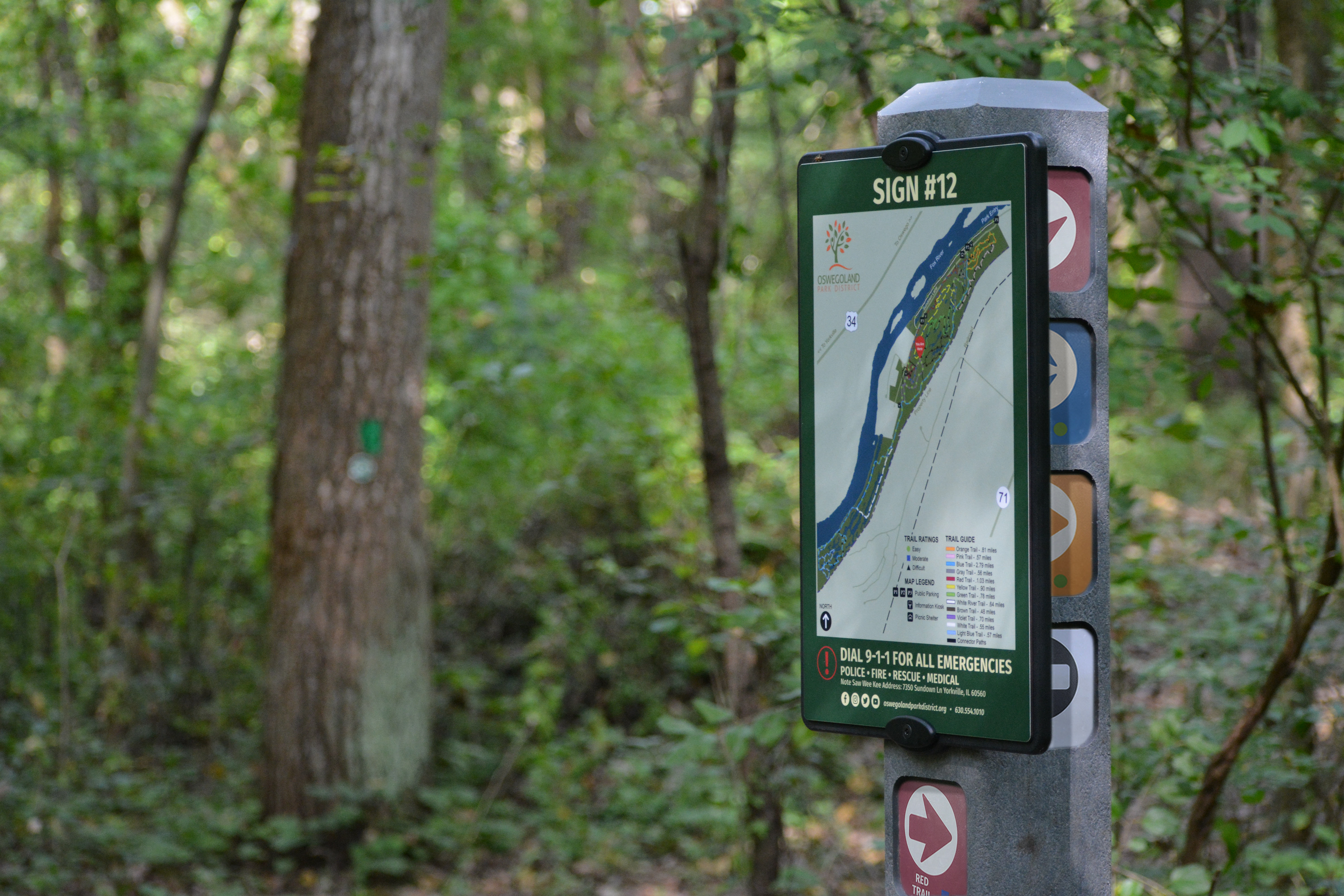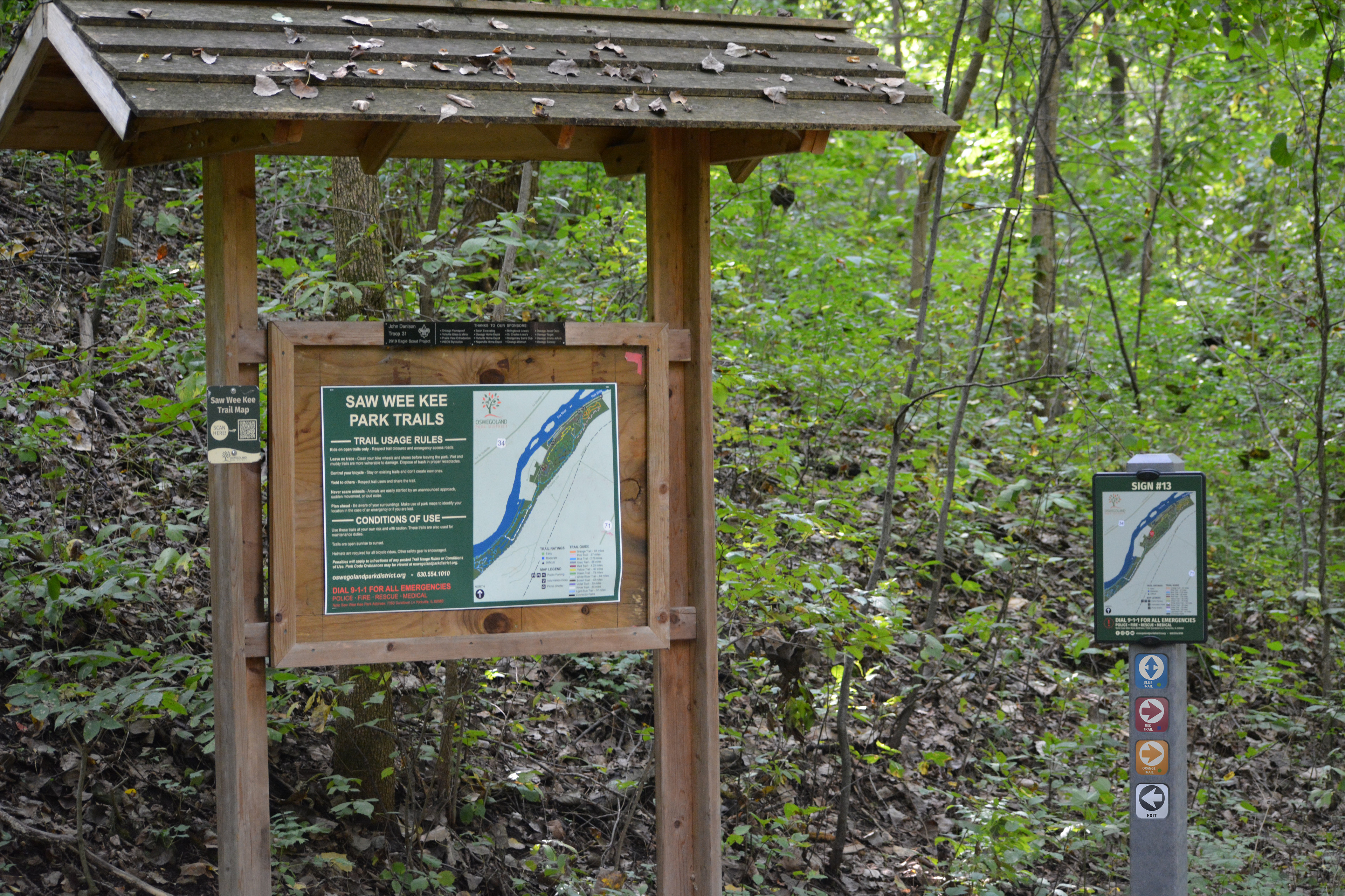 This map signage and wayfinding arrows were created for Saw Wee Kee Park. Trails were remarked and new signage was needed to help bikers and hikers easily navigate the park. The wayfinding signage received IAPD's Intergovernmental Cooperation Award